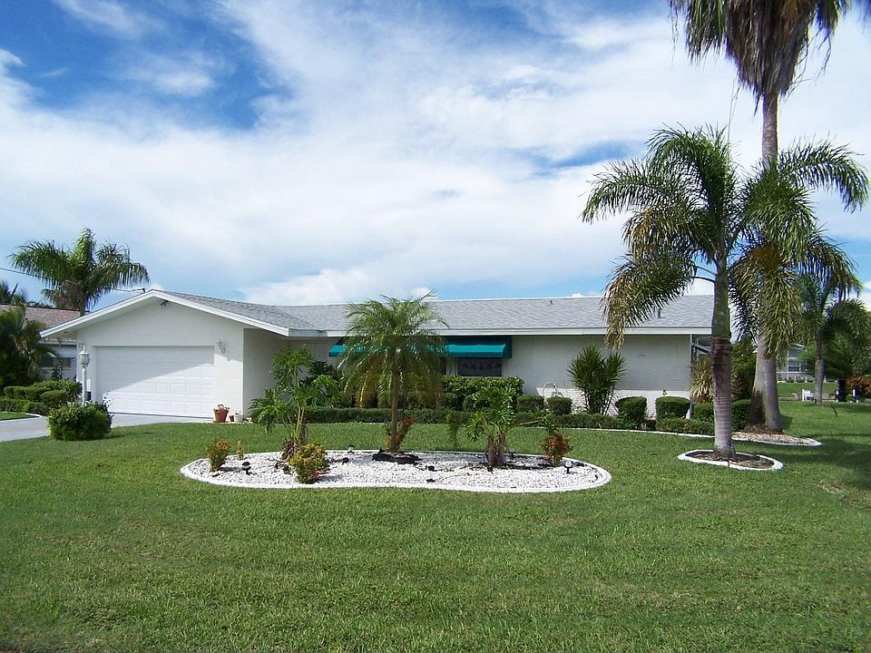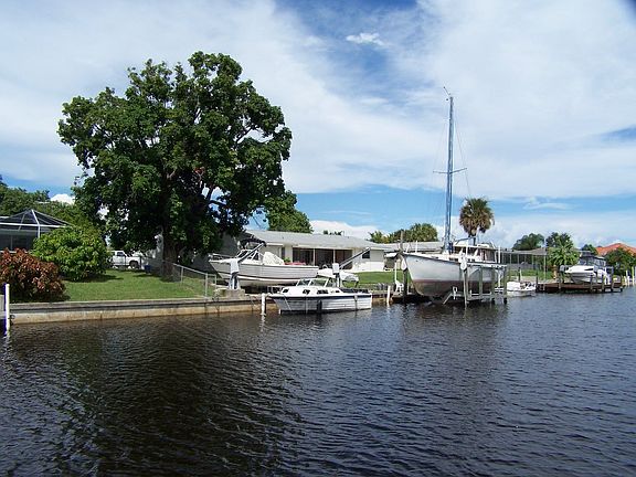 120' of water frontage with quick Sailboat access and 58' of dock at end of cul-de-sac all located in highly desirable Gold Coast neighborhood. 15x30 solar heated pool is surrounded by 1950 sq ft of screened lanai, WOW. Great floor plan with living, dining & family rooms, central kitchen, split bedrooms & pool bath. Kitchen has been updated & features breakfast bar & pass thru window. Master has walk-in & linen closets, all bedrooms are good sized. Lots of pocket sliders to the huge, covered & open lanai make for easy Florida living. There's curbing & auto sprinklers to enhance the lush lawn & plantings. New roof in 2006. Windows have been replaced & garage door is to hurricane codes. This casual living home has an awesome site & location. Priced to sell so put it on your list of must sees today!
