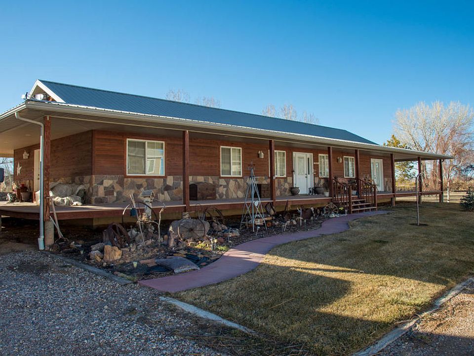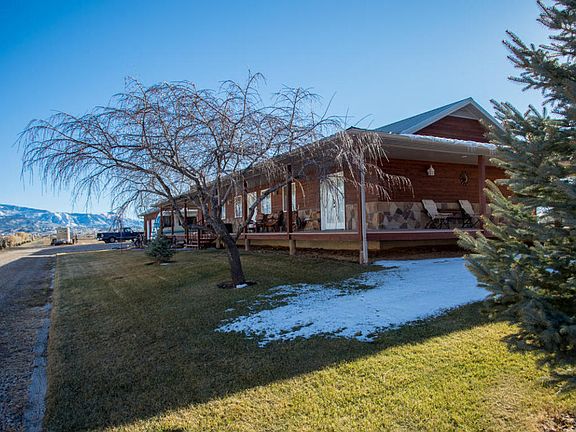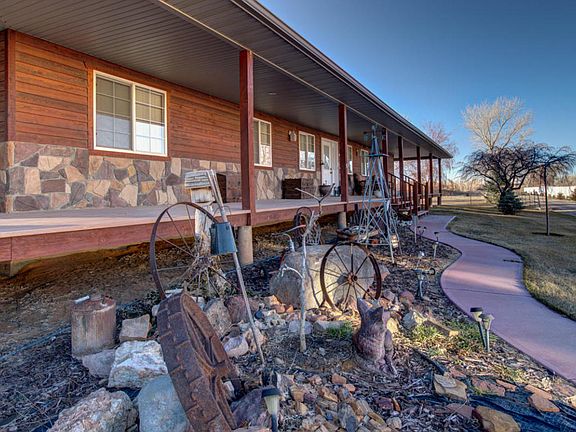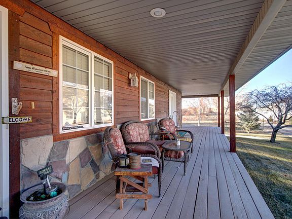 Gorgeous home on 6+ acres, has a covered porch that wraps around the entire house! The kitchen, dining, and living area is open and welcoming with a cozy fireplace and vaulted ceilings. The bedrooms are spacious and there's an office with a built in desk. The three car garage is deep and has lots of shelves and work space. There is radiant heat throughout the house. Property comes with 7.5 acre feet of water. This property is the perfect place for your horses and other animals!