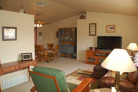 Terrific trilevel w/new flooring throughout, partially finished lower level including family/game/media room, laundry, pantry. Great location off the beaten path w/great mountain views, corner lot mature landscaping w/drip system front xeriscape and back raised garden w/lawn and covered patio. Home is very clean well maintained Turn key. All new kitchen appliances in 2020 included. Breakfast bar, pantry, large dining area, vaulted ceilings, ceiling fans and master suite with walk in closet. Workshop/RV Garage is 30 x 45 with two 12x12 doors is insulated has heating/cooling. New Furnace, Air conditioning and whole home humidifier installed 2021.