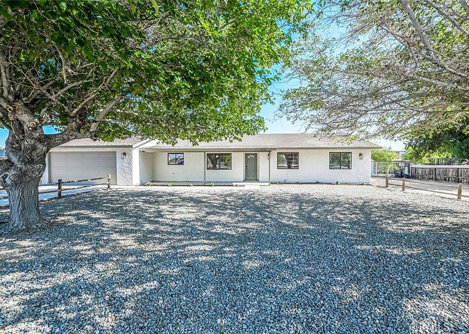 No need to look any further, this is the home you have been waiting for! Turn your vision of home ownership into reality with this picture-perfect 3 bedroom 2 bath single story Apple Valley home. Located in a peaceful residential neighborhood. Exuding an alluring curb appeal, newly painted exterior, RV parking on both sides of home, two towering shade trees and freshly landscaped mulched flower beds. This beautiful home invites you inside to discover more. Upon entering, you’ll discover an open floor plan exemplified by neutral color tones complemented with newly installed wood laminate floors. Freshly painted interior and new modern light fixtures soar above, open concept connecting living room kitchen and dining room that serves as a natural gathering place for family and guests. This 3 bedroom 2 bath home is remodeled, move in ready and features many upgrades such as potential home office, possible 4th bedroom or family room off the living room through the double doors. The newly imagined kitchen offers new stainless-steel appliances such as stove, dishwasher, modern vent as well as new quartz countertops, modern white cabinets and new LED light fixtures ready for you to cook up some tasty meals. Ceiling fans keep you cool in the newly painted bedrooms with new carpet as you rest, while well-sized closets help keep you organized. Tastefully remodeled baths accommodate the bedrooms with new chic light fixtures, and quartz counters. More than generous backyard with covered patio that inspires blissful gatherings. This low maintenance back yard has plenty of room for your imagination to create your own little paradise. Two large storage sheds help keep you organized. Clear termite report and cleared septic certification on hand. Affordable, upgraded and move in ready, what more could you ask for?? This could be your new home you have been waiting for. Call and schedule your appointment to view this great home before the opportunity is gone.