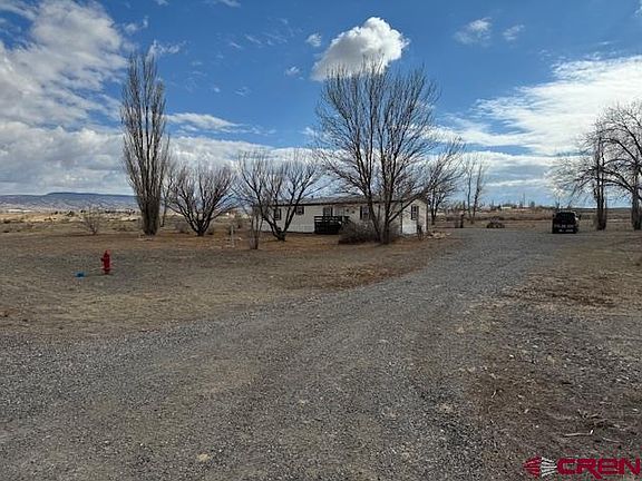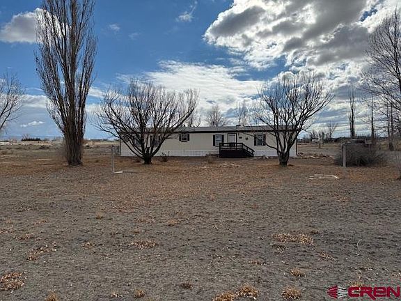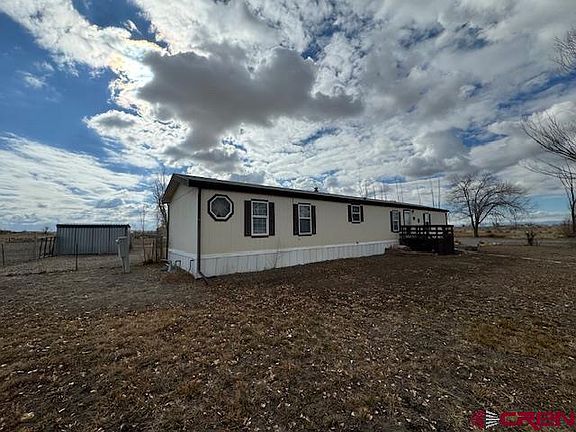 Clean, well-maintained, single-wide manufactured home purged to a 5+-acre parcel of open land with amazing views! Located within the peaceful Solar Court subdivision, the home is close to the town of Delta but has the feel of rural country living on this acreage. The home has a split floorplan with a large master with walk-in closet and large on suite bath with soaking tub. Two nice-sized bedrooms and a full bath are located at the opposite end of the home. The home is bright with ample sunlight. A skylight in the guest bath drops sunshine into this space. Enjoy the gorgeous views of the San Juans from the private back porch and fenced backyard that is mostly in low-maintenance gravel. The front entrance also has a porch, and mature trees grace the front yard where you can enjoy views of the Grand Mesa while you play horseshoes in the built-in pit. Storage shed included. Irrigation water is available. Come take a look at this move-in ready home!
