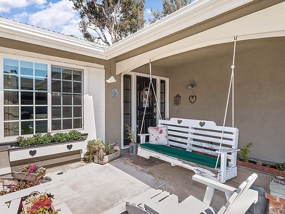 Absolutely Adorable Single Story Home! 3 br, 2 bath 1340 sq ft home with custom newer garage doors and curb appeal and charm galore. As you walk up the natural stone path to the entry, you'll be tempted to stop and relax in the inviting conversation area adorned with Adirondack chairs and porch swing. Through the beveled glass front door you'll be greeted by high ceilings with crown molding,tall baseboards, updated paint colors, solid Pecan wood flooring, and fireplace. Moving into the kitchen area, you'll love the white kitchen cabinets with pullouts, farm sink, marble counters and custom back-splash, newer SS appliances under-cabinet lighting and island with maple top. The kitchen is open to the permitted family room addition with high ceilings, natural stone fireplace, slider to the cozy partially covered patio area which has been plumbed with a gas line and 220V for a future jaccuzi, storage sheds, The entire perimeter of the home is enchanting with arbors, fruit trees (lemon, lime, and orange) and fragrant blooms. The 3 bedrooms are located down the hall and both full bathrooms have been updated with the past 5 years. Other features are: Inside laundry, 2 attic areas with pull down stairs, Newer dual pane windows, Newer HVAC ducting, New thermostat, ceiling fans throughout, reverse osmosis system in the kitchen, and so much more! See Supplements Attachment. Close to the 241 toll road, shopping, restaurants, entertainment, parks, and more!