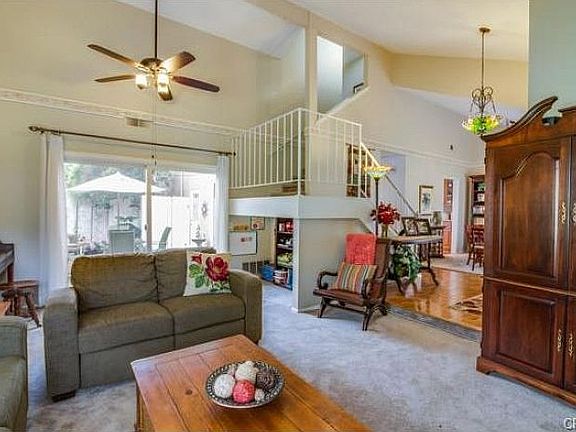 Beautiful 3 bedroom 2.5 bath Townhouse in Yorba Linda. End unit with great location, no shared inside walls! Enjoy the large landscaped greenbelt right outside the front door, providing plenty of space and privacy. The open floor plan and cathedral ceilings make this unit have a very spacious interior. The formal living room has a brick-faced fireplace with upgraded fireplace glass crystals and elegant molding that continues into the formal dining room. Remodeled kitchen boosts new cabinets, pantry with pull out drawers and granite countertops. Den is open to the kitchen with a slider leading to the charming courtyard patio. All bedrooms upstairs with ceiling fans, mini blinds and custom paint. Lovely master bedroom, with large walk in closet. Two car attached garage, with storage racks. Home is close to association pools, tennis court and play ground. Must see to appreciate! Other upgrades include: Double pane windows, whole house fan, new doors, blinds throughout, track lighting (in den), double dish washer (and newer water heater (3 years old.)