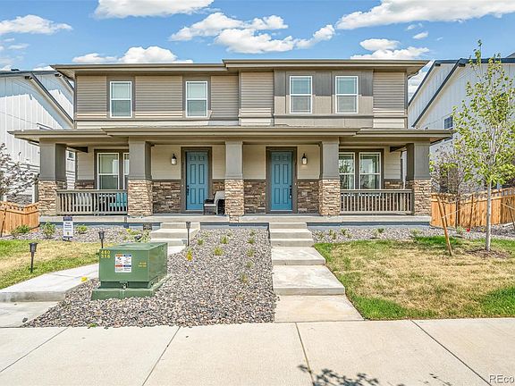 Welcome to this charming paired home located in the vibrant community of Painted Prairie in Aurora, Colorado. This meticulously designed property offers modern living with a touch of traditional charm. As you step inside, you are greeted by an open-concept floor plan that seamlessly connects the living, dining, and kitchen areas. The spacious living room is bathed in natural light, creating a warm and inviting atmosphere perfect for entertaining guests or relaxing with family. The kitchen features sleek countertops, stainless steel Whirlpool appliances, including an energy star certified, dishwasher, and range, ample cabinet space, and a large island with seating, making it the heart of the home for culinary enthusiasts. Adjacent to the kitchen is the dining area, ideal for enjoying meals with loved ones. Upstairs, you'll find the serene master suite complete with a en-suite bathroom and a walk-in closet, providing a private retreat after a long day. Additionally, there are two generously sized bedrooms and a full bathroom, offering plenty of space for family or guests. Outside, the low-maintenance yard is fenced for privacy and security, perfect for summer barbecues or morning coffee on the patio. Residents of Painted Prairie enjoy access to a variety of community amenities, including parks, walking trails, and recreational activities, creating an active and vibrant lifestyle. Additionally, this home includes Carrier 14 SEER central air conditioning, ensuring comfort throughout the seasons while also being energy efficient. Located across from a park, you'll have easy access to green space and outdoor activities. Conveniently located near shopping, dining, entertainment, and major transportation routes, this paired home offers the perfect blend of comfort, convenience, and style. Don't miss out on the opportunity to make this your new home in Painted Prairie! The Listing Team represents builder/seller as a Transaction Broker.