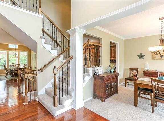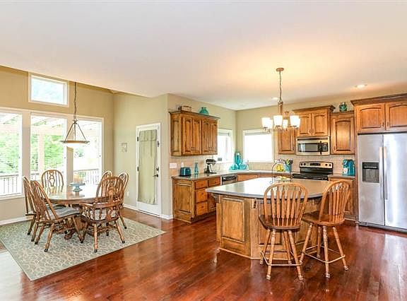 Nature Lovers Dream! Spectacular Home in Western Shawnee Backs to Green Space. Dramatic Entry Opens to Inviting Great Room w/ Vaulted Ceiling, Gas Fireplace, & Wall of Windows. 5 Bedrooms w/ Walk-in Closets and 4 Full Baths! Spend Your Evenings on the Pergola Covered Deck or Roasting Marshmallows at the Firepit!Bedroom & Full Bath on Main Level offers many options- including an Office, Play Room, Hobby Room, or Mother-in-law Suite! Oversized Wet Bar in Finished Basement with Refrigerator.