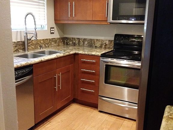 Immaculate Downstairs Condo with Newer Paint, Updated Kitchen with Granite Counters, Newer Cabinets, All Appliances Included. Full Size Stack-able Washer and Dryer in Unit. Master Bedroom with Walk in Closet and Double Sink Vanity. Main Bathroom with Newer Cabinets, Granite Counter and Tub/Shower Combo. Ceiling Fans in both Bedrooms. Fireplace in Living Room. Spacious backyard with Pavers. . Tenant to pay all utilities and trash