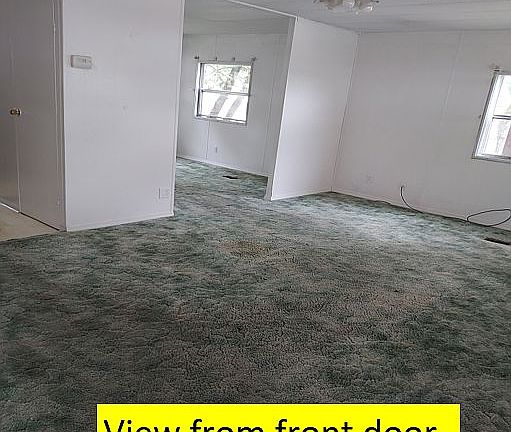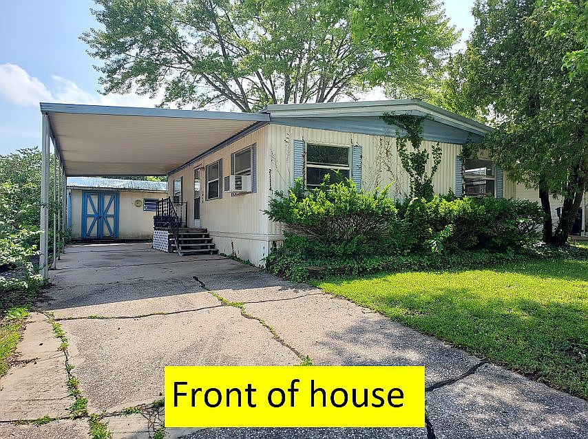 This double wide near the lake has great bones. UPDATED: This home is freshly painted and all of the carpets cleaned and sanitized. This home has a wonderful view of the 25-acre lake surrounded by trees and plenty of wildlife. Offers large living and dining area with lots of sunny windows. Kitchen comes with all appliances included plus washer and dryer. Large master bedroom with walk-in closet. Second bedroom great for office or guest bedroom. All windows have storm windows for lower electric bills. Bonus two sheds! The first shed is great for the craftsperson or hobbyist. The second shed is great for gardening. Also, has an 5-year-old roof. Hurry, this will not last at this price. Viewing by appointment by owner. This mobile is located in Lakeview Estates which offers a great alternative for seniors 55+ who are active but who desire to live among other seniors. Property amenities include an on-site cafe, landscaped grounds, a public living area, inground swimming pool.