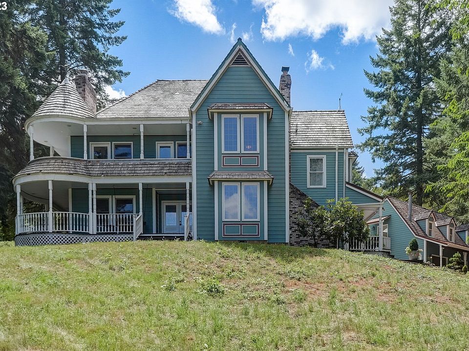 This exquisite custom-built Queen Anne Victorian residence sits gracefully on over 5 acres of breathtaking land, offering panoramic views of three majestic mountains. With its elegant wrap-around porches, this home provides an idyllic retreat for those seeking tranquility and luxury. Step inside this spacious, modern gem, boasting 3 bedrooms that provide ample space for all your family's needs. The large owner's suite is a private haven, exuding comfort and style, while an additional secondary suite ensures your guests feel equally pampered. Car enthusiasts and DIY aficionados will appreciate the convenience of the 3-car detached oversize garage, complete with a mechanic's pit, making it an ideal space for car maintenance and projects. Above the garage, you'll find an inviting 864 sq ft Guest House/Apartment, featuring a bedroom and a separate bath, perfect for accommodating visitors or even as a potential rental income opportunity. For those who value craftsmanship and versatility, a 36x48 Barn with a loft offers limitless possibilities. Whether it's for storage, a workshop, or even converting it into a creative space, the choice is yours. Nature lovers will find solace in the serene surroundings of mature trees that envelop the property, creating a peaceful oasis away from the bustle of everyday life. Entertainment is taken to new heights in the theater room, offering the ultimate movie-watching experience for you and your loved ones. Additionally, a dedicated storage room ensures that your belongings are kept tidy and organized. This property truly has it all from the stunning architectural design to the abundant features that cater to modern living. Don't miss this rare opportunity to own a slice of paradise, where you can bask in nature's beauty while indulging in the finest comforts of a well-appointed home. Roof on ADU will be replaced before closing and restored to like new condition on house.