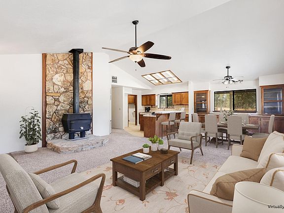 This charming country home, nestled on a generous 4.12-acre lot equipped with an ag meter, offers a serene and private retreat with a range of modern updates and practical features. The home features a durable metal roof, ensuring long-lasting protection and minimal maintenance. The property includes a versatile outbuilding, perfect for various uses such as storage, a workshop, or a hobby space. Inside, the home has been recently refreshed with updated paint and new carpet throughout, providing a clean and contemporary look. A cozy wood stove adds warmth and character to the living space, while solar panels offer energy efficiency and sustainability. Enjoy the beauty of the outdoors from the front and back porches, ideal for relaxing or entertaining.
