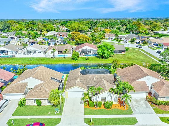 Spacious three bedrooms, 2 baths, 2 car garage, screened in pool and on the water in Country Landing III in Loggers Run!! Open & bright with vaulted ceilings & tile on a diagonal throughout! Fabulous kitchen w/granite countertops & backsplash, ''black stainless'' finger print resistant higher end Kitchen Aid appliances including a double French door fridge that is self-closing. Tons of sliders, all leading out to the screened in, huge pool that over looks the canal. New oversized screen enclosure from 2019 with large covered area. Great place to enjoy the outdoors, BBQ, throw the ball or just relax in a hammock. The fisherman in the family can catch peacock and largemouth bass right from the backyard. Split floor plan/master suite on one side with super huge walk-in closet and private lanai off the bathroom& then on the other side of the house, 2 additional separate bedrooms. (see attached floor plan). This home is so clean it sparkles. There is nothing to do but bring your tooth brush & some furniture. Roof is from 2006(see attached just completed 4 point/wind mit inspection showing 5 years of life remaining on the roof).. Inside laundry room. A/c 2019. Water Heater 2021. Oversized 2-car garage w/bonus workbench area. Seller is including a huge safe. Located in Loggers Run, Country Landing Sec 3 has a Low HOA fee and includes several parks with baseball/basketball/tennis/playground/tot lot/nature trails/ fishing pier/24hour roving security plus MORE! All ages & pet friendly. Amazing schools include Sandpiper Shores Elementary, Loggers Run Middle and West Boca High School.