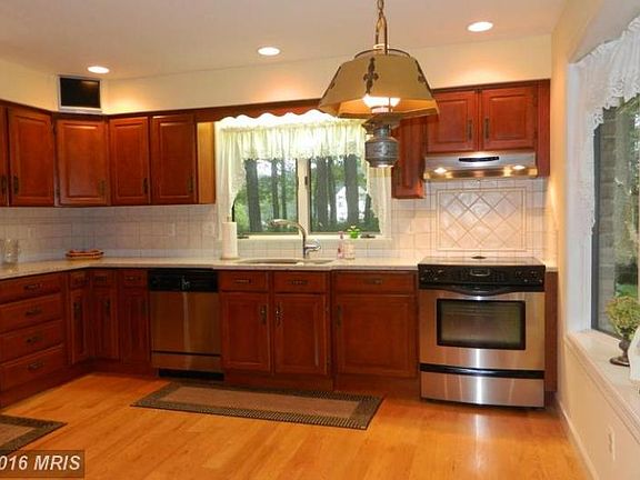 Beautiful brick home situated on 2.93 gorgeous park like acres. Lg updated kit. w/granite counter tops, SS appliances, Hardwood floors. 1st floor master suite w/walk-in cedar closet. 1st fl family room w/brick fire place that opens out to a huge stone patio. Completely finished LL w/wood stove, wet bar, full bath & sliders that lead out to the tranquil yard. Long circular drive. New roof. Lg Shed.