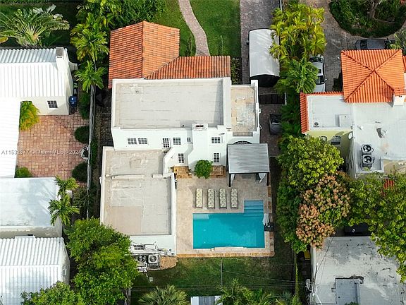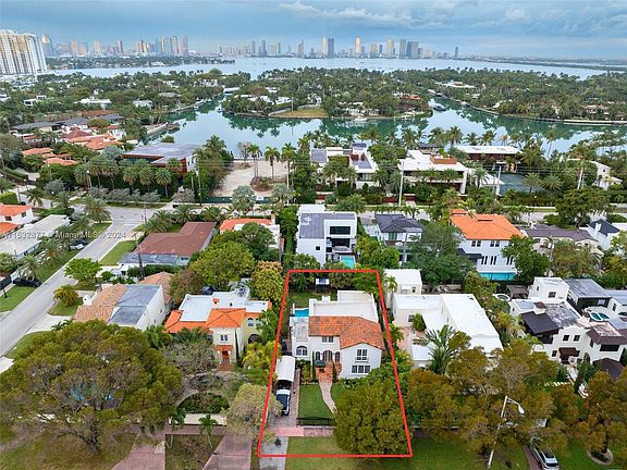 Fantastic Mediterranean-style residence with a brand-new swimming pool, ideally positioned in the coveted Miami Beach area. Nestled opposite the Miami Beach Golf Club and merely a stone's throw from Sunset Harbour, this charming two-story dwelling boasts four bedrooms and three and a half baths. Highlights include elegant cherry wood flooring, a cozy fireplace, and numerous delightful architectural elements. Enjoy enhanced comfort and tranquility with impact-resistant, soundproof doors and windows, along with a new air conditioning system and a recently renovated kitchen.