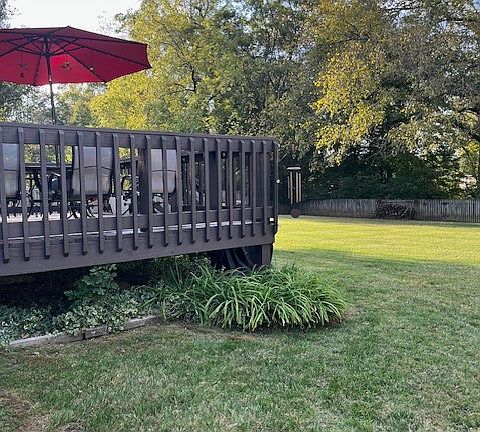 Spacious fenced in backyardNew stainless steel refrigeratorFreshly painted deck