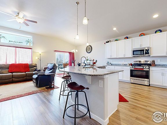 Be prepared for NO disappointments. This ranch style home has it all and it's all in wonderful condition! Step through the covered front patio with mountain views and enjoy the main level living with an expansive Primary En Suite plus two more bedrooms split from the primary. The main level laundry and wide open floorplan with an oversized, gorgeous kitchen with so much storage. Stretch the quality space right into the basement where there is a simply enormous recreation room plus additional bedrooms and an oversize full bathroom. The home is just over 3200 sq ft - all finished. Every countertop is granite throughout the home including the huge kitchen island. All stainless appliances are included (gas range too). Out back is a scenic deck with access to a lower patio design that includes a fully fenced and sprinklered yard, circular fire pit seating area, private hot tub area, walkway to the side entry and front drive. The 3 car garage is finished down to the epoxy floors and storage shelving. The home backs to open space and is a short 250 foot walk to the acre park with walking paths and a playground. If golf is your thing, the TPC is only 3 minutes away. Such a great location for Northern Colorado with great access to Loveland, Berthoud, Longmont, Highway 287 and I-25.