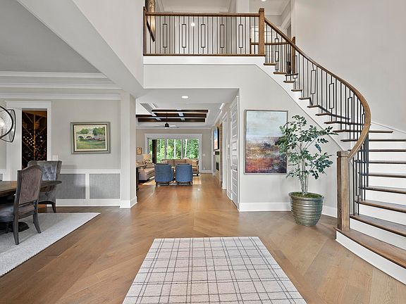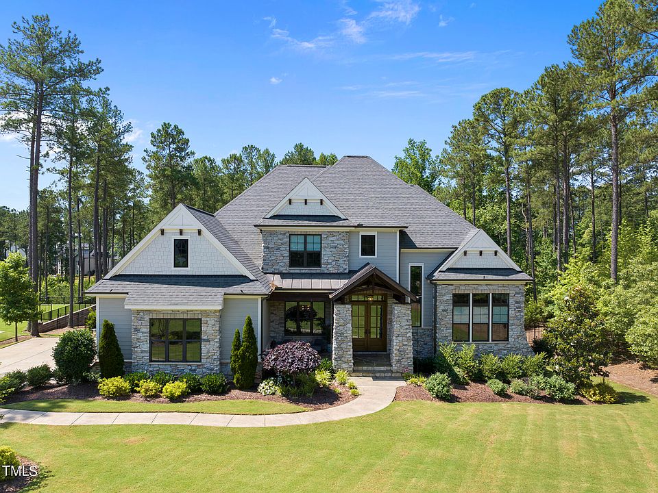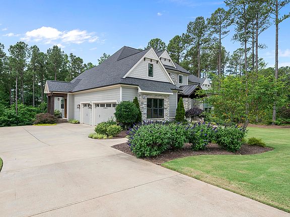 Luxurious estate home featuring a pool, spa, and outdoor kitchen area, nestled on nearly an acre of pristine land. This exquisite home boasts an open floor plan, bathed in natural light. Upon entry, a grand semi-spiral staircase welcomes you, showcasing meticulous craftsmanship. The chef's kitchen is a culinary masterpiece with an oversized island, abundant cabinet space, and a concealed pantry. The breakfast nook offers tranquil views of the serene backyard. The living room is adorned with floating shelves, ample storage, and a sophisticated bar area complete with an extensive wine rack. The formal dining area is accentuated by a stunning brick feature wall. The expansive laundry room provides generous storage solutions. The primary suite is a private sanctuary, featuring a lavish bath with dual vanities, a large shower, and a standalone tub. The opulent walk-in closet boasts custom built-ins and meticulously organized hanging areas. A guest bedroom with a private bath, along with a dedicated office, completes the first floor. The second floor houses two additional elegantly designed bedrooms. The game room offers a perfect retreat for watching sports or enjoying a movie night, while a spacious bonus room can double as a fifth bedroom. Step outside to the sophisticated back porch, complete with a cozy sitting area with a gas fireplace, and a dining space with a built-in grill, all overlooking the pool, spa, and manicured backyard. The back porch is enhanced with retractable screens, blending luxury with functionality. This former Parade of Homes showcase is a must-see, epitomizing elegance and grandeur.