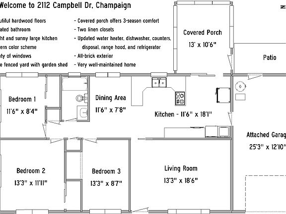 Welcome home to your charming all-brick ranch! Beautiful hardwood floors greet you as you enter and continue through the hallway and all three bedrooms. The updated bathroom offers great storage and ceramic tile tub surround. The kitchen boasts ample cabinets and has amazing counter space for this price range! The kitchen leads to the BONUS covered screened porch! Outside, enjoy the low-maintenance all-brick exterior, huge sunny yard with privacy fence, and the garden shed for added storage. Updates include: dishwasher, disposal, range hood, sink (2016); water heater (2015); and bathroom (2014). Roof 2005, furnace and A/C 2001. All kitchen and laundry appliances stay! This is a very well-maintained home, plus low county taxes! View the floor plan and panoramas at www.AroundCU.com, then come visit this must-see home in person!