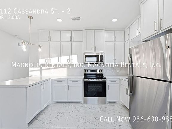 Welcome to 2112 Cassandra, a stunning 3-bedroom, 2-bathroom apartment located in the vibrant city of Mission, TX. This spacious home boasts a modern open floor plan, high ceilings, and contemporary fixtures that add a touch of elegance. The kitchen is equipped with stainless steel appliances, including a refrigerator, microwave, and stove/oven, making meal preparation a breeze. A washer and dryer are also included for your convenience. The master bedroom features an en-suite bathroom, providing a private sanctuary within the home. The property also includes a large backyard, perfect for outdoor activities. For your comfort, the apartment is equipped with central AC and ceiling fans. A carport is available for your vehicle and 24/7 maintenance support is provided for peace of mind. This pet-friendly apartment comes with breed restrictions. All utilities are the responsibility of the tenant. Lawn care is included, freeing up your time to enjoy the comforts of your new home. A 12-month lease is required. Smoking is not permitted in the apartment. Experience the perfect blend of comfort and convenience at 2112 Cassandra.