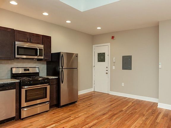 Beautifully renovated apartment in a classic brownstone building with central air, washer/dryer in the unit and a private deck! The gourmet kitchen boasts granite counter-tops, stainless steel appliances which include a dishwasher and microwave. Bathrooms are nicely renovated and contain gorgeous tile on the floors and walls, bathtub, and striking vanities. Outside walls are lined with double pane windows which help insulate it in the winter and let in a ton of natural light. Approximate square footage is posted.