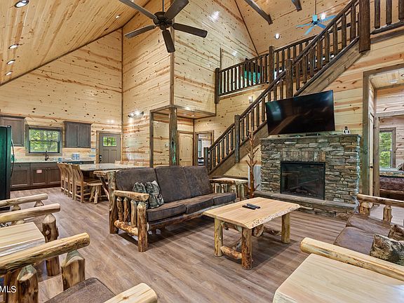 Phenomenal Short Term Rental opportunity in Waldens Creek. This 2 year young cabin with large, Main Level Indoor Pool, outdoor fireplace, theater room, game room and bedrooms with fireplaces generated over $200,000 gross income in 2021. Located on a large wooded lot and just 15 minutes to the Parkway, this cabin is great for a large family gatherings who want to have fun both at the cabin and enjoying all the attractions of the Pigeon Forge and Gatlinburg areas. This log cabin is fully turnkey, easy to access on paved level roads and no HOA fees. Take advantage of this great opportunity today!