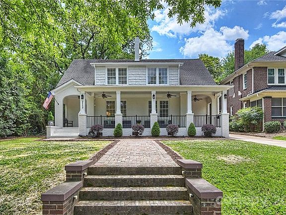 Incredible opportunity to live on one of the oldest and most historic streets in Charlotte! This fabulous bungalow home features an updated kitchen with marble counters, stainless appliances and white cabinets. Renovated utility room, dining room overlooking scenic backyard, living room and den with fireplace! Hardwood floors on both levels, master on main with updated bathroom. Four bedrooms up and oversized bonus room with storage! Freshly painted in 2021, the Rhino Shield exterior offers a 25-year warranty. Lots of opportunity for outdoor living with expansive covered front porch overlooking tree-lined street and rear deck offering privacy and space to entertain! Ample storage in the basement, fenced yard and motorized, gated driveway for off-street parking. Friendly, active community with neighborhood social events! Very walkable and bikeable to restaurants, parks, shopping and greenways, highly rated schools and one of the most prestigious addresses in Charlotte!