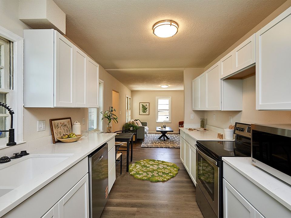 Completely reimagined from the studs up. 2112 E 23rd combines modern updates with timeless charm, offering peace of mind thanks to major system upgrades including a new HVAC, roof, and electrical panel. Inside, fresh finishes span over 1,400 sq ft of living space- luxury vinyl plank flooring, new carpet, updated trim, smooth wall textures, and a clean, neutral paint palette. The kitchen shines with quartz countertops, stainless steel appliances, and brand-new cabinetry, creating a stylish and functional hub for everyday life. The flexible layout offers three spacious bedrooms plus a versatile fourth non-conforming room- perfect for a home office, playroom, or guest space. Two fully updated bathrooms include a full bath upstairs with a new vanity and tub, and a sleek ¾ bath in the finished lower level. Out back, the large yard is shaded by mature trees, providing a private retreat. The newly added attached garage connects through a thoughtfully designed mudroom into the lower level- a rare convenience in this area. Located just minutes from downtown and East Village, with quick access to I-35 and within walking distance to schools, parks, and the library, this move-in ready home delivers both modern amenities and a prime location!