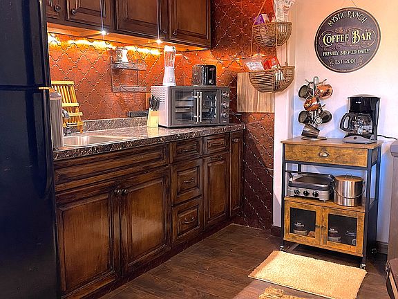 Southwest Two Story Fully Furnished AirBnB CASITA just reduced to $1700 for short term month-to-month rental. Warm Woodsey Living Room with Suede Sofa, 2 Fireplaces, Kitchette, Large Bathroom, Closet and Foyer. French Doors open to private Patio and rolling green courtyard with outside seating and fire pit for quiet mature couple. Beautifully Appointed Upstairs Master Suite has Fireplace and French Doors that open to a large balcony overlooking gardens with desert and Mountain views. Near markets, shopping, restaurants freeways at border of Cave Creek, Set in a Natural Reserve, the property is surrounded with beautiful hiking and horse trails This exclusive "over 40" guest ranch is an Airbnb in peak season, now available until October Weekly rental at $450 per week.or month to month $1800 short-term rental. All utilities paid; Washer/Dryer steps from unit; Internet, wi-fi free, paid Netflix, Hulu. Swimming Pool, Jacuzzi and private patios. Convenent parkng.
