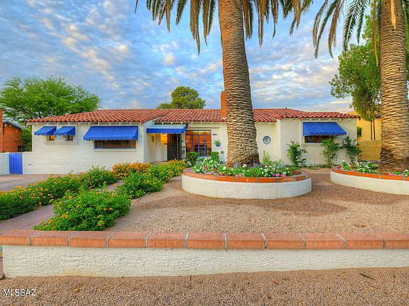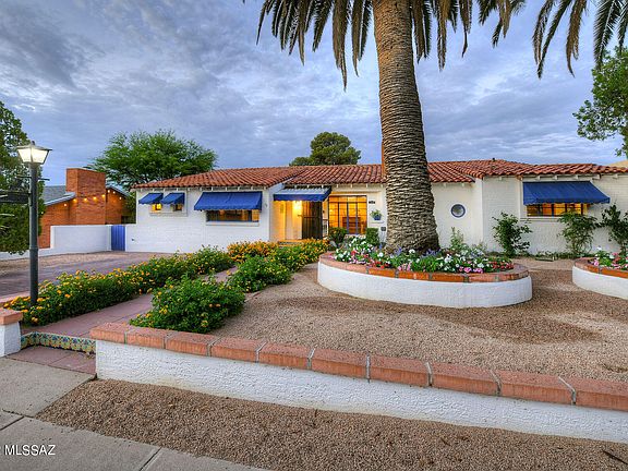 .Beautiful Bungalow near the Arizona inn. This lovingly cared for and maintained home retains its original charm with its hardwood floors, vintage tiled bathrooms, master has two room suite w/two bathrooms. Hall bath was remodeled to reflect the time period, split 3rd bedroom has rec room w/bar ensuite bath, kitchen, w/ corner window, pantry & mudroom. Arizona room has original integral colored concrete flrs. Backyard has covered patio, fountain, brick pavers, fruit trees, garden beds, laundry room off large 2 car garage. Walk to AZ Inn, Banner Hospital, the Modern Street car, UArizona and more!