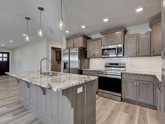 For lease. Not for Sale. Stunning 3-bedroom, 2-bathroom home in North Joplin, close to Joplin's Frisco walking trails. This spacious 1,412-square-foot residence offers the perfect blend of comfort and convenience with a split bedroom floor plan and durable LVT flooring throughout. Step inside to discover an open concept floor plan where the kitchen seamlessly connects to the living room, featuring stainless steel appliances and built-in bar seating. The primary bedroom boasts a large walk-in closet and walk-in shower. Outside, enjoy a covered front porch and patio perfect for morning coffee or evening relaxation. No smoking, No vaping, No Pets. Subject to acceptable credit report. No cash accepted. Approval is required before showing. Available Immediately.