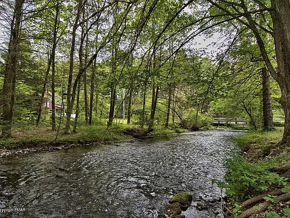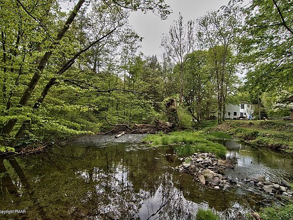 You will not be able to beat this creek front location! Property offers 5 bedrooms, 2 full baths, oak hardwood floors through out, living area with freestanding wood stove, huge eat in kitchen with tons of cabinets and tile floors, master bedroom with separate sunken sitting area overlooking creek, charming covered porch overlooking creek, wrap around deck, slate patio, creek front bar, large storage shed with concrete floor, all located on 2.24 acres with 500 ' of water frontage and less than 2 miles to the Delaware Water Gap, Prime location!!!