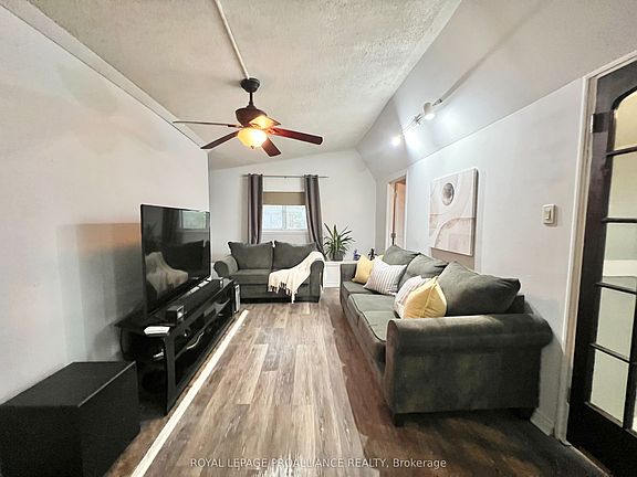 Set on a 73x150 lot on the outskirts of Trenton, this 2-bedroom, 1-bathroom bungalow blends a peaceful country feel with the convenience of being close to town. Only minutes from amenities, 5minutes to CFB Trenton, and with quick access to the 401, its a great fit for commuters, first-time buyers, investors, or contractors looking for their next project. Enjoy low utility costs thanks to a natural gas furnace and gas hot water heater, both located in the crawlspace. The home features vaulted ceilings throughout. From the front deck, take in views of a serene meadow across the road where wildlife often wanders. The private lot is framed by mature trees and features a generous backyard with a fire pit for summer evenings, plus an oversized garden/utility shed for storage or hobbies. With strong potential in a sought-after location, this property is ready for you to make it your own.