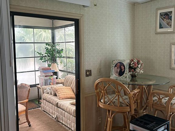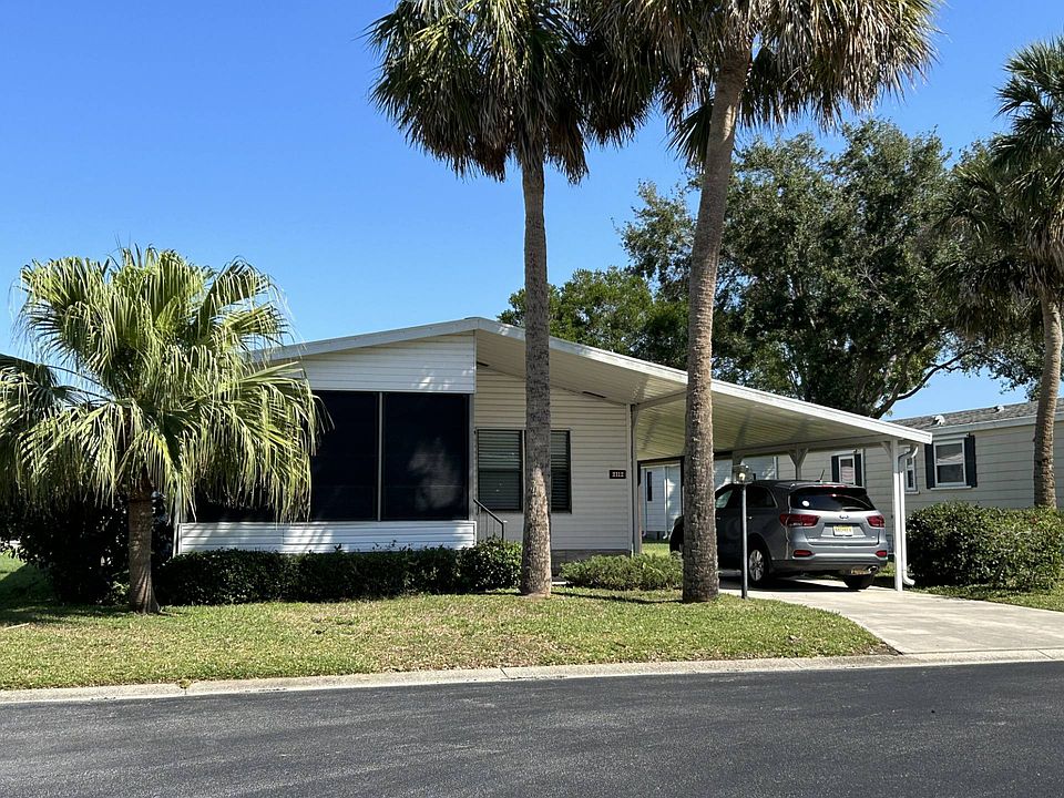 LOCATION, LOCATION, LOCATION! The best location in the best community! This home is located across the street from the clubhouse, pool, and all activities if you wish to participate, but the best part is that it is located on a CUL-DE-SAC with no traffic! This 2 bedroom, 2 bath furnished home comes with all appliances that were replaced less than 3 years ago. The A/C was replaced in 2022. The home features a bright kitchen with a breakfast bar and plenty of cabinets. There is also a built-in hutch in the dining room for even more storage. There are plenty of areas for storing all your things whether it is in the side entry room that goes out to the covered driveway or the oversized 10 x 11 storage shed at the back of the carport. The large master bedroom has double closets and the master bath has a large soaking tub as well as an energy-efficient stacked washer & dryer. Florida room has privacy windows with a ceiling fan to enjoy your morning coffee comfortably, work on a hobby, or relax with friends in the evenings. This Lakes of Melbourne home is perfectly situated, allowing you to be as private as you'd like to be, or social while enjoying the community's many activities. Lakes of Melbourne is a stunning gated 55+ community located in the hidden gem of West Melbourne. Its close proximity to all the amazing restaurants, shopping, hospitals, major routes, and, of course, the beaches, makes it the perfect place to live as a year-round resident or a snowbird!