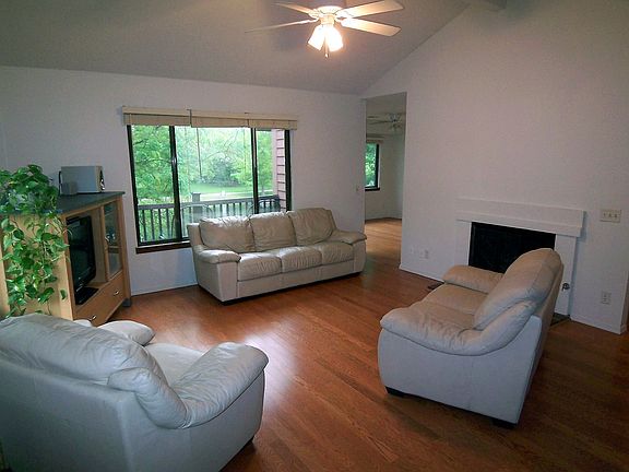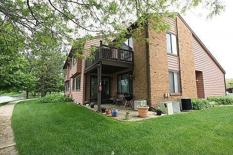 Beautiful 3 bedroom / 1.5 bath condo on quiet street overlooking large pond. Pond is private for fishing, paddle boat and paths to enjoy. Upgraded Hardwood floors throughout living area and dining room. Custom tile in bathroom and kitchen. Cathedral ceiling with lots of windows for natural sunlight. Gas log fireplace and home freshly painted. New maintenance free deck. Exterior painted. New garage door. Paddle boat stays with property. All appliances included with the purchase. Close to shopping and restaurants. This is an amazing well kept condo that is perfect for quiet living.