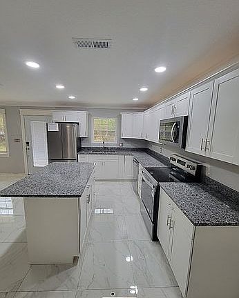 Totally remodeled inside and out.New roof,windows, doors,heating and cooling unit. Porcelain flooring throughout, Custom walk in showers,Granite ib all 3 bathrooms and kitchen,Stainless appliances, new Shaker style cabinetry ect.