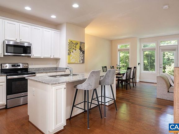 Rare offering in The Towns at Stonefield! Better than new, this Energy Star Certified, 4 BR/3.5 BA townhouse combines eco-friendly living, contemporary design, and unbeatable walkability. The freshly-painted main level features an open living area, formal dining room and a chef’s kitchen—perfect for entertaining or everyday living. Natural light pours in through oversized windows, creating a bright and inviting atmosphere. Upstairs, the primary suite has a walk-in closet and ensuite bath. Two additional bedrooms share a stylish full bath. On the entry level, a fourth bedroom with its own full bath offers flexible space for guests or multi-generational living. Simply leave your car in the 2-car garage and walk to nearby shopping, dining, movie theater, and more. Right off the bus line and less than 10 minutes' drive to UVA and historic downtown—enjoy the vibrant, carefree lifestyle you've been dreaming of!