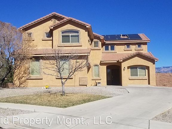 FANTASTIC 4 br, 3ba, 3,600 sq. ft., 2 car garage in Cabezon! - This is a one of a kind home, clean and ready for move-in! 4 bedroom, 2 full and 2 half baths, 3,600 sq. ft., 2 car garage, open floor plan with so much to offer! Large formal living and dining combo, large family room, open to kitchen, breakfast nook, laundry room with storage. One downstairs bedroom with private half bath. HUGE loft perfect for play and gaming area. Large master bedroom has vaulted ceiling, separate sitting area, private balcony with amazing view of the mountains and full bath. Separate shower and tub, his and her walk-in closets and double sinks. Full guest bath and two additional bedrooms upstairs, one with window bench. Central refrigerated air, gas heating, ceiling fans, cathedral ceiling in front entry, storage closet under stairs, fireplaces in family room and master bedroom sitting area. Quiet neighborhood with walking trail directly behind home. Low maintenance xeriscaped front and back. Parks nearby within walking distance as well. Stainless steel appliances include, side by side refrigerator, dishwasher, cooktop, double oven, washer and dryer, built-in microwave and garbage disposal. Pets welcomed with management company approval. No smoking allowed inside the home. Tenants pay all utilities. Near shopping, restaurants, entertainment and bus lines. MUST abide by HOA rules and regulations. Renters insurance required. (RLNE5803330)