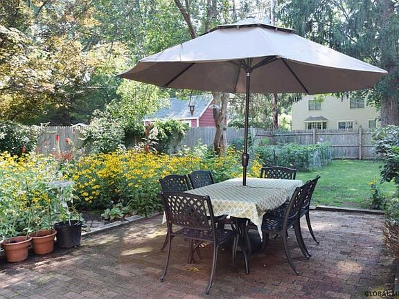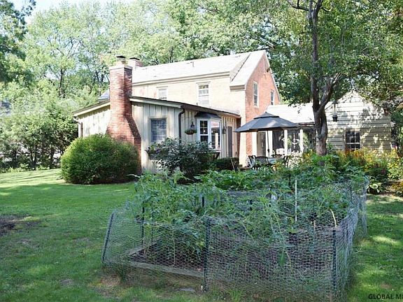 Beautiful inside and out! Welcome to this 3 bedroom, 2.5 bath brick colonial by famed architect/conservationist Paul Schaefer with many recent updates! This home is located on a tree-lined street in Old Niskayuna in top-rated Niskayuna school district with shopping, hospitals, golfing, and Union College nearby. You'll love the enclosed porch with walls of windows and a stone floor or step outside to the fenced yard with a vegetable garden, brick patio, and beautiful perennial flower gardens. This home had a conversion to natural gas heat in 2019 with a new Lennox furnace and new central air conditioning. Inside features a new custom kitchen in 2018 with GE stainless steel appliances, new red oak flooring, red oak counters with a laminate seal, Kraft Maid cabinets including roll-out shelving and soft-close doors and drawers, a tile back splash, and new recessed and pendant lighting. Theres an open view to the family room currently being used as the formal dining room featuring a built-in cabinet, bay window overlooking the patio and gardens, and a wood burning fireplace along with a continuation of the wood beam ceiling accentspart of the original character of the home. There is also a pantry closet in the kitchen and a door to the patio. This home offers red oak flooring with walnut plugs throughout with the partial bath on the main floor featuring being new red oak flooring from the kitchen remodel in 2018. Theres a spacious living room with crown with dental molding, and a wood burning fireplaceboth fireplaces having had exterior re-pointing completed. The formal dining room currently being used as a study features crown with dental molding, a chandelier, and a built-in corner cabinet. There is also a Dutch door leading to the enclosed porch. Upstairs you will find the master bedroom with a walk-in closet space as well as a newly added master bathroom in 2018. Features a continuation of the red oak flooring, a single sink vanity, and subway tiled shower with a glass door. The second closet also has a staircase to the attic. Bedroom 2 features overhead lighting, a closet, and cordless blinds. Bedroom 3 features overhead lighting, a closet, and a honeycomb blind. There is a linen closet in the hallway and the main bath features ceramic tile flooring and tiled walls for the tub/shower area and a single sink vanity. There is a full basement, and the Frigidaire washer and dryer are included in the sale. Additional home features include the 1 car attached garage, a brick and wood exterior, 150 AMP electric, an oil water heater, and a slate roof on the main home and garage with asphalt shingle on the back addition.
