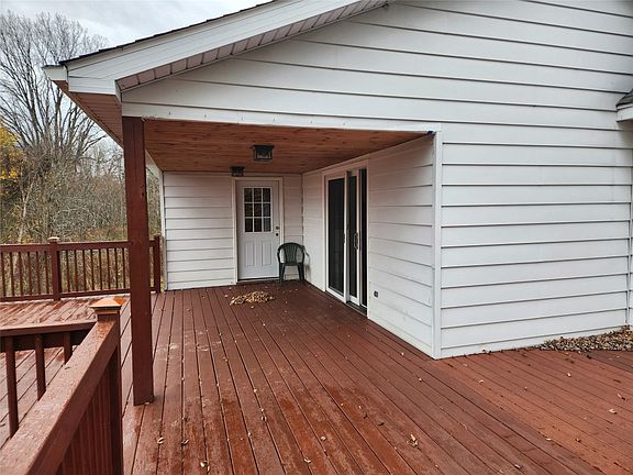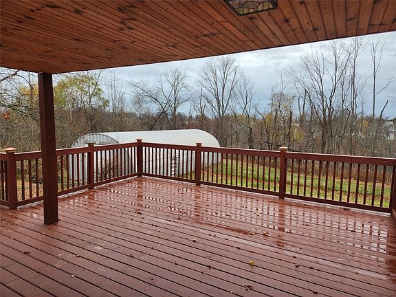 Charming and well kept cape with lots of room and storage abilities! Large living room with fireplace and doors leading out to a large partially covered deck overlooking a fenced back yard included on the one acre parcel. Two bedrooms and full bath on each floor. Finished lower level with views of and walkout to the back yard. A 30x60 Quonset building with 13' high door, concrete floors, outlets and electric for RV also provides tons of room to store other outdoor toys and equipment or use as a workshop. Don't miss the unique additional storage area under the garage!