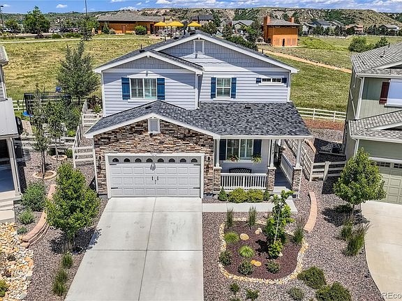 **Say goodbye to today’s high interest rates—Assume this 3.875% FHA Loan—instant savings compared to today’s rates!** Contact Listing Agent for Details. Perched on one of the larger lots in Crystal Valley Ranch, backing to open space with rolling meadows, this meticulously maintained two-story blends modern luxury with peaceful seclusion—offering stunning views, refined interiors, and seamless indoor-outdoor living. An open-concept layout welcomes you w/ top-tier finishes, plantation shutters, and mindful builder upgrades. The light-filled family room, featuring durable LVP flooring, flows effortlessly into the gourmet kitchen. The chef's kitchen boasts granite countertops, soft-close cabinetry, a spacious center island with pendant lighting, a large pantry, and a full suite of stainless steel appliances, including a gas cooktop. Indoor-outdoor living awaits with direct access from the breakfast nook to a private, covered patio—perfect for hosting or relaxing, with sweeping views and a tranquil ambiance. A main-level bedroom, full bath, and mudroom complete the first floor. Upstairs, the oversized primary suite features a private, covered balcony—ideal for savoring morning coffee or unwinding in the evening. A stylish sliding barn door opens to the spa-inspired four-piece en-suite bath, providing an adjoining his-and-hers walk-in closet. Two additional well-proportioned bedrooms, a Jack-and-Jill bathroom, a convenient laundry room, and a versatile loft—ideal as a media room or study—complete the second level. The finished basement serves as a “man cave” or flexible living space w/ a large rec room, fifth bedroom, and ¾ bath—perfect for a home theater, or guest suite. Additional highlights include a hot tub, 2 HVAC units, pool table, oversized 2.5-car garage, expansive crawlspace, Xeriscaping, 2024 Class R-4 Roof, and zero-maintenance turf—designed for year-round enjoyment. Stroll over to the community pool, clubhouse, fitness center, parks, trails & tennis courts.