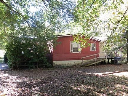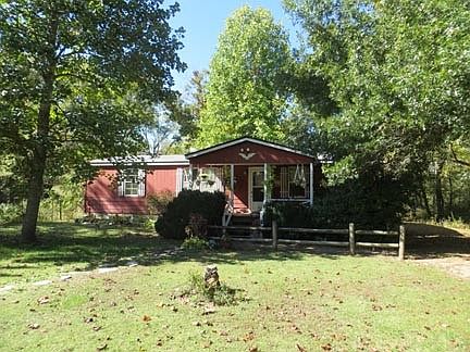 #5045- 4 Acres with home directly on the creek bank. A pretty drive leads from the main county road through the creek to the home. The home features a 6 room- 3 bdrm, 2 bath with exposed beams in the living & kitchen area, plus central heat & air. An 8x16 covered front porch and the 8x22 back deck gives a nice sitting area to enjoy the wild life and the bubbling creek flowing by. A 7x13 green house provides a place to raise your garden plants and the 20x24 garage offers plenty of storage. There is room for a good size garden and still have a nice woodland of large sycamore trees as well as a mixture of various oaks. Look at this only 2 miles to town at a private setting for only $83,500.