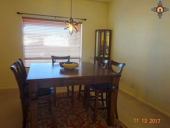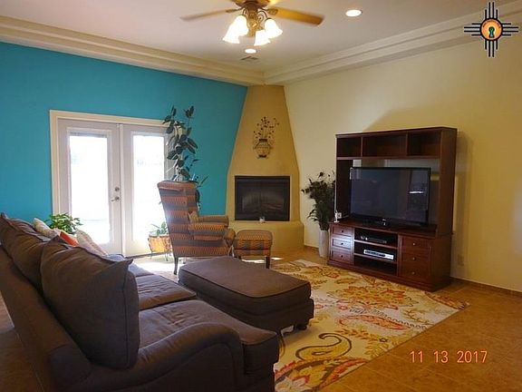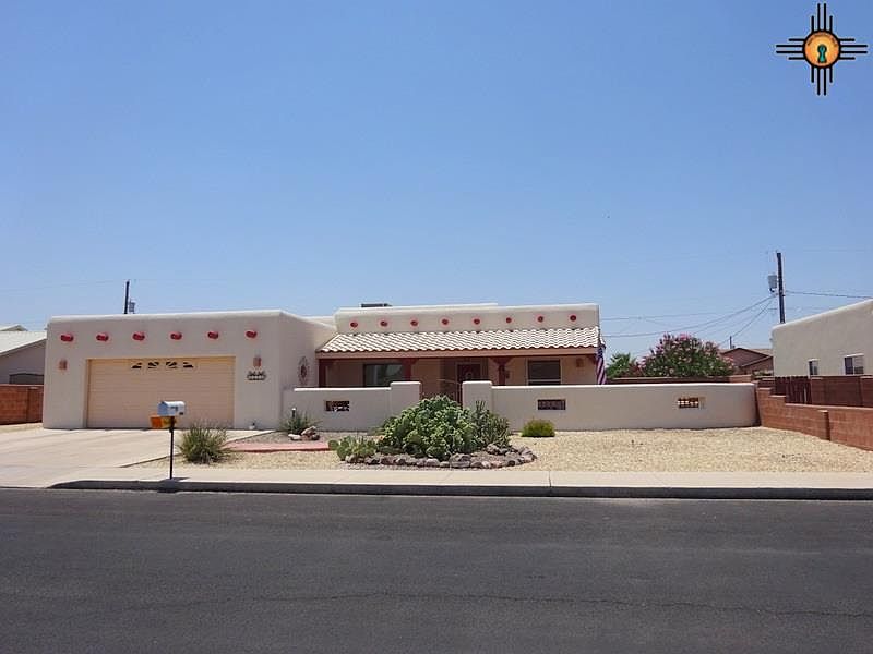 Southwest Styled home with 3 bedrooms, 2 baths, 2 car attached garage. Living room has kiva fireplace, pot shelves, tray ceiling, french doors to covered patio. Bonus room could be for Dining, Den or office. Tiled floors througout except for bedrooms and dining room. Master suite with jetted tub and separate shower, large walk in closet.Eat in Kitchen, quartz countertops, w/bay-windowed dinette area. 8x12' storage/tool room attached to house at side yard with fenced area for dogs. Close to Peppers Supermarket, Downtown Deming and commute routes via Interstate 10 to Las Cruces, Lordsburg and the Airport at El Paso Texas. Silver City NM just up the road 'a piece'. LEASE TO OWN OPTION.