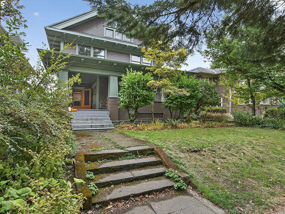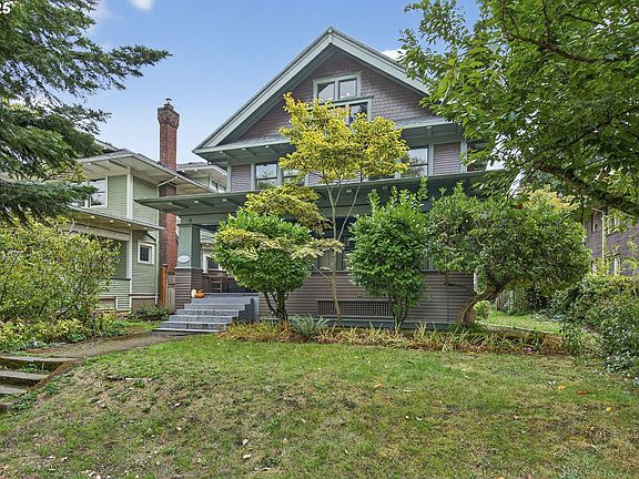 Nestled in the heart of Portland’s beloved Ladd’s Addition Historic District, this stately 1912 Craftsman duplex offers over 5,000 square feet of timeless charm and flexible living space. Located on a wide, tree-lined street surrounded by architecturally significant homes, this property is just blocks from the vibrant cafes, restaurants, and shops of Hawthorne and Division Streets, and steps from Abernethy Elementary and Ladd Circle Park.The bright and spacious upper unit spans the top two floors, offering five bedrooms, two full bathrooms, and a treehouse-like perch above the neighborhood. The upper unit also includes an open living and dining area, two bedrooms, a full bath with clawfoot tub, and a well-appointed kitchen. A covered east-facing sleeping porch provides a peaceful retreat with year-round views. On the top floor you’ll find three more bedrooms—including one with a cozy sleeping loft and another with soaring cathedral ceilings and a chandelier—plus a second full bath with a spa-style shower. Fresh paint, newly refinished oak floors, and original Craftsman details like wainscoting, built-ins, period light fixtures, and trim elevate the historic character.The ground floor unit is a generous one-bedroom apartment with formal living and dining rooms, a fireplace, wood floors, large kitchen with built-ins, and an oversized bedroom with vintage bathroom finishes.A full-height shared basement includes a washer/dryer, abundant storage, and a separate exterior entry—offering future potential. A large covered front porch invites community and connection, while the sun-soaked backyard features established planting beds ready for gardening or outdoor relaxation.This is a rare opportunity to own a piece of Portland history in one of its most treasured neighborhoods—whether as an owner-occupied duplex, multigenerational home, or investment property.