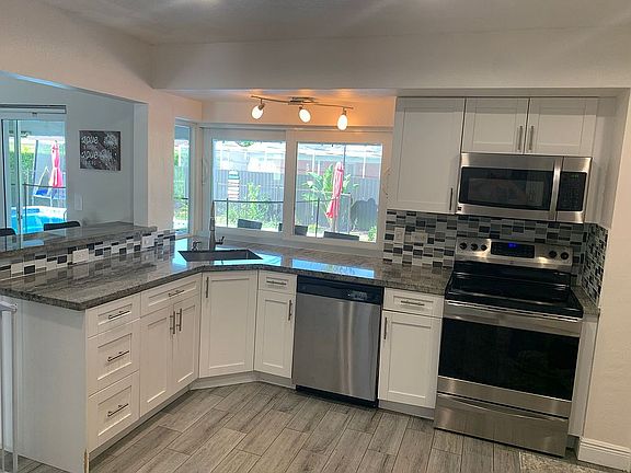Move right in to this beautiful pool home situated in the heart of desired Westchester. Close to everything! This home is move in ready! Home updated in 2016 with hurricane impact doors, new AC, new tile throughout home, kitchen remodeled with beautiful granite countertops, front porch tiled and new AC duct system. Pool was remodeled in 2016. Both bathrooms fully remodeled in 2021. In 2020 Backyard was extended with on outdoor kitchen, new tile and lanai. Pool has a salt system and heater! Main bedroom , Dining room and office/den/bedroom have access to the pool area. A house you won’t want to miss.