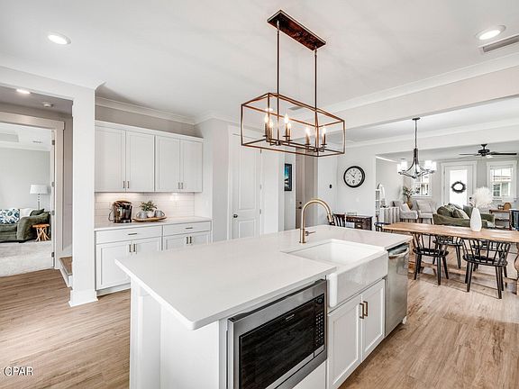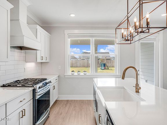 Welcome to this immaculately maintained 4-bedroom, 3.5-bath home in the highly desirable SweetBay neighborhood of Panama City! Featuring a stylish kitchen with a gas range, wood range hood, quartz countertops, and stainless-steel appliances including the refrigerator and built in microwave. Enjoy the added benefits of an electric vehicle hookup, blinds, fully fenced yard, and guest parking located just across the street. No details were missed in this spacious floor plan with a first-floor primary bedroom, upstairs loft, and open layout for entertaining guests. The primary bedroom feels luxurious with soft carpet, tray ceilings, double vanities in the bathroom, tile flooring, a large shower and dual closets. This home is located within a quick walk to the impressive community pool. Other community amenities include the dock, basketball court, playground, picnic area, and fishing, catering to various interests. Exterior features include a sprinkler system, 2-car garage, and covered patio. Experience comfort and convenience in this centrally located Panama City residence! Buyer to verify any information deemed important.