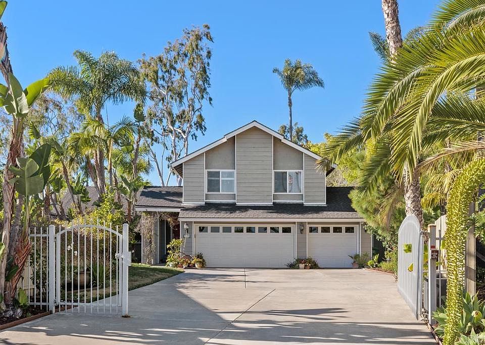 This charming 3 bedroom, 2 1/2 bath home is in the La Costa neighborhood of Carlsbad. The gated property is located at the end of a beautiful cul-de-sac. The home features a lovely living room with vauted ceilings, a dining room overlooking the lush yard, an eat-in kitchen with granite countertops and hardwood floors throughout most of the home. The family room, located off the kitchen, is perfect for gatherings and has access to the patio and hot tub. The master bedroom suite has 2 large closets and vaulted ceilings. The home sits on a large 13,696 square foot lot with plenty of room for a pool and RV/boat. Located close to shopping, restaurants, La Costa Golf Club, beaches and the I5. This private oasis is the perfect place to call home!