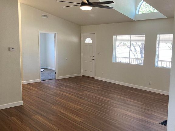 This gorgeous, totally remodeled home has New cabinets, granite countertops in the bathrooms and kitchen, new appliances, ceiling fans, lights, doors, paint, flooring, and a great Trex deck on the covered front porch for year round enjoyment. The roof is only four years old and the house has a new septic tank and hot water heater and newly updated well equipment with a great well at 20 gpm. The air conditioning unit and furnace have all been cleaned and serviced by Chino Heating and the house comes with a one year warranty. The property has many mature trees and is fenced on three sides and located on a cul-de-sac for maximum privacy, but near shopping and restaurants. There is a carport, two storage sheds and a workshop with bench and cabinets.