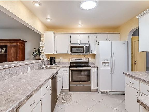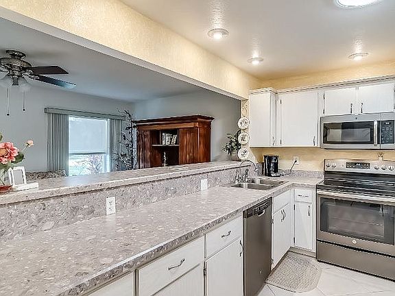 Beautiful updated furnished villa, in a 55+ community, with a low HOA fee of $85 monthly that provides a clubhouse, heated pool, shuffle board court and lawn maintenances. Great location close to restaurants, golf courses, shopping and hospitals. Spacious split floor plan, roof replaced in 2020 and central Air in 2016.