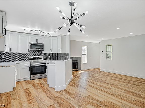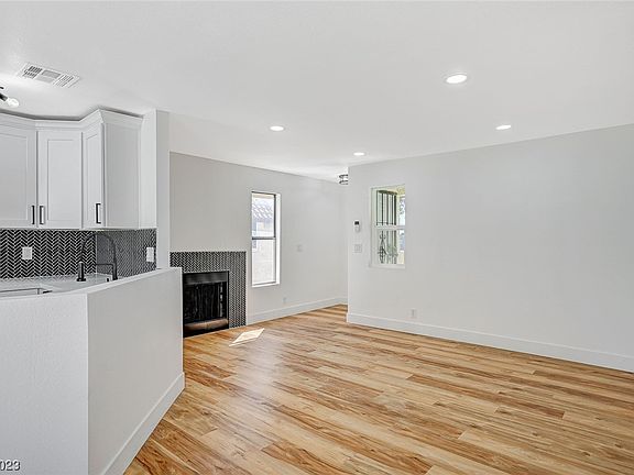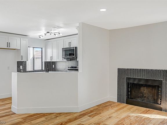 Welcome to 2112 Venus Ave, Unit D, Las Vegas, NV 89030 - Your ideal condo in the Santa Barbara Village community! This immaculate 2-bed, 1-bath gem boasts 797 sq ft of modern living space. Step inside, and you'll be greeted by a beautifully remodeled interior. The kitchen is a chef's dream with brand-new stainless steel appliances, elegant white granite countertops, and a stylish chevron backsplash. The open concept design seamlessly connects the kitchen to the living area, perfect for entertaining. Experience the luxury of new laminate flooring that spans throughout the condo, offering a sleek and low-maintenance finish. The bathroom continues the trend with white granite countertops and striking jet black fixtures The living room is the heart of this home, featuring a cozy gas fireplace encased in chic chevron tile, providing the perfect ambiance for cozy evenings. Experience modern living at its finest. Contact us today to schedule a showing!
