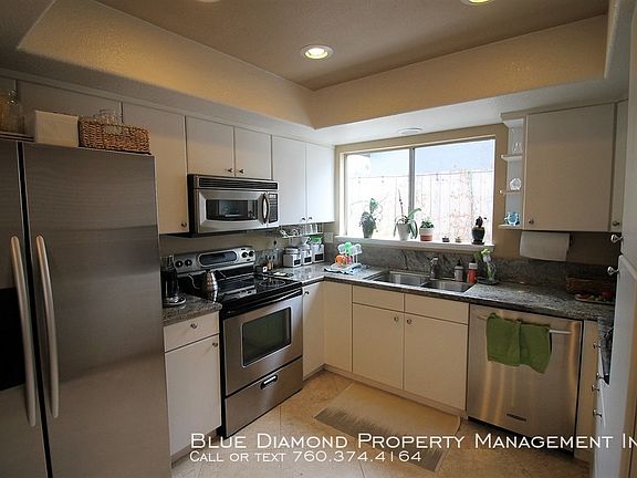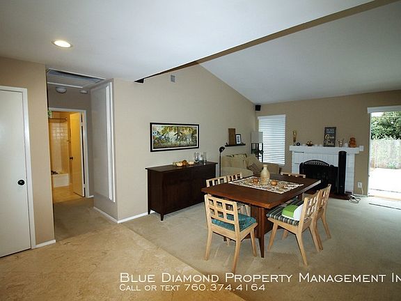 Rare find in Rancho La Costa! 2 BR, 2 BA home with open floor plan, 2 car garage, fenced yard with a fire-pit, raised garden beds and fruit trees on a cul-de-sac. This first time rental is clean and will be ready for move in with only some minor changes. This home wont last.
