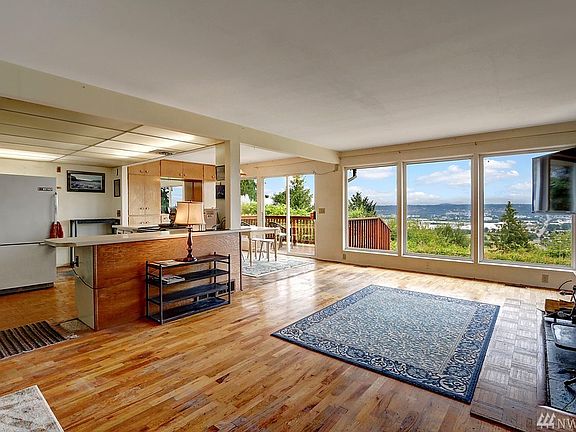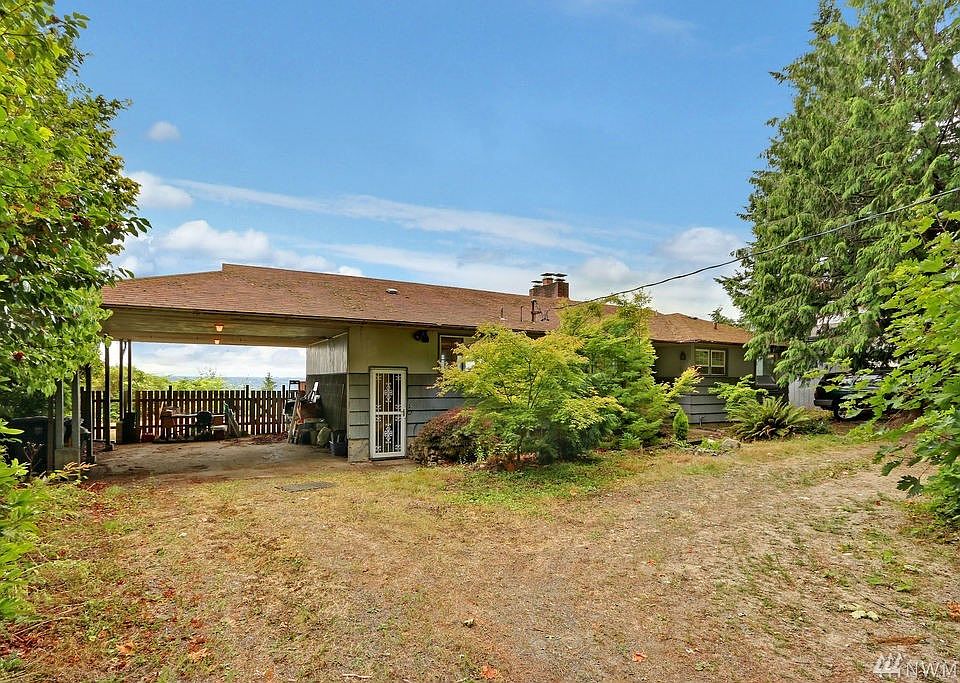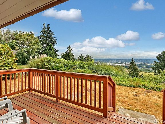 Diamond-in-the-rough/Investor Alert! Mid-century 3 bdrm, 2.25 bath view home. 1480 sq ft finished on main, + 1480 high-ceiling basement with BIG development potential. Main: large open liv/din rooms w/frpl, 2 bdrms, 1.75 bath, incl master suite. Lower: 1 bdrm & ½ bath. Reconfigure to create huge rec rm w/frpl, util rm, full bath & 2 bdrms. 29,900+ sq ft lot, buyer to verify. Sub-dividable? Big valley & mountain views, incl Mt. Rainier. Dbl carport. Secluded. Talls trees & lush landscaping.