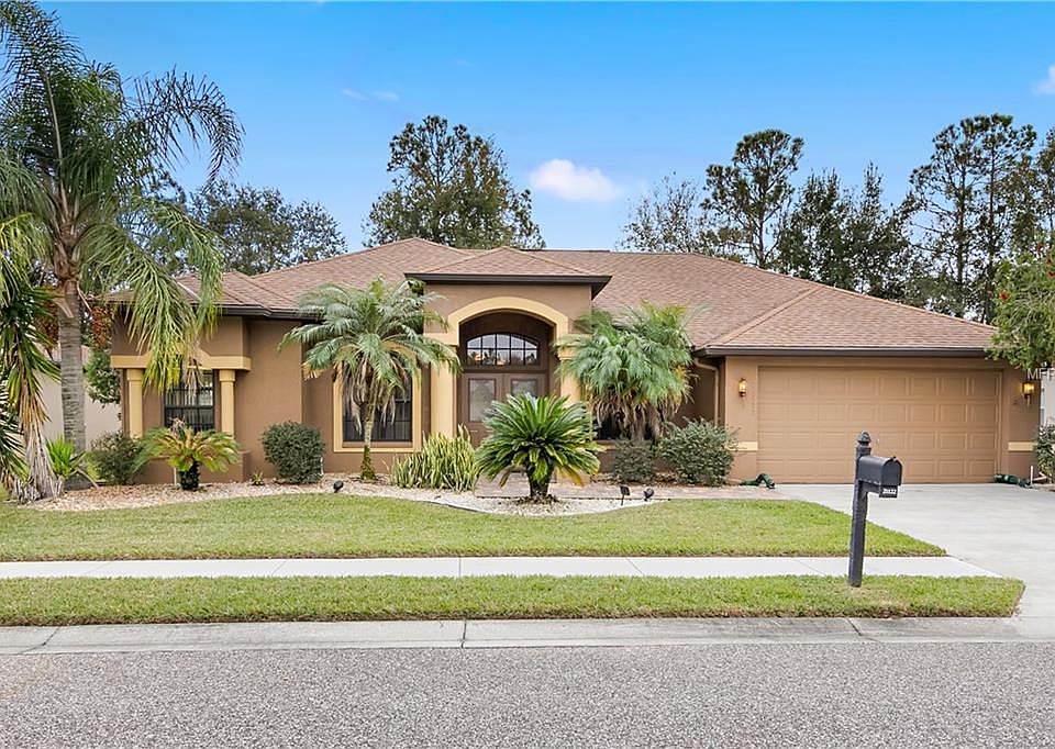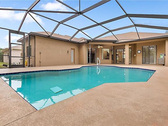 Beautiful 3 bedroom 2 bath pool home located near the end of a cul de sac in the over 55 gated community of The Groves. This house was just freshly painted on the interior and is move in ready. All the kitchen appliances are new. The home is very spacious with living room, family room, dining room, home office, bonus room and a 2 car garage. The swimming pool is a salt water pool centrally located with the Master bedroom, living and family rooms having sliding door access. There is also a bathroom that opens to the pool. The kitchen is open to the family room that has an electric fire place for everyone to enjoy. The home is also outfitted with an intercom system making communicating across the house by just pushing a button. The community is the best part of living in The Groves. It features a golf course, tennis courts, clubhouse and restaurant. This community is hopping with activities so you never need to leave. A shopping plaza with Publix grocers is located adjacent to the golf course community and can be accessed by golf cart. Don't miss out on this incredible opportunity to own a slice of paradise!